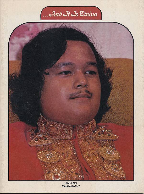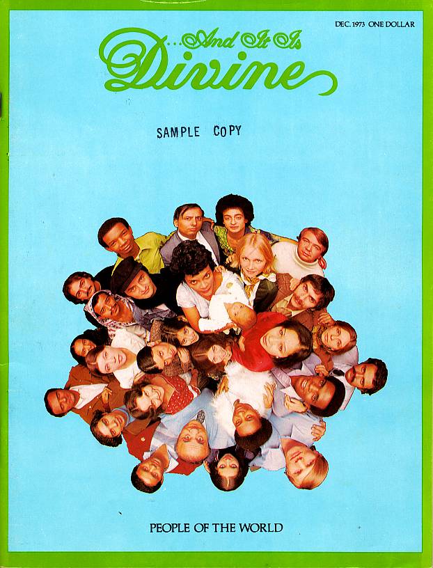 'And It Is Divine' was the name of this colour magazine published by Divine Light Mission in the USA from November 1972 until the late 1970's when it was replaced by 'Élan Vital'. It began as a monthly magazine with highbrow pretensions attempting to carry a wide spectrum of articles relating to the wider alternative culture and ended the same as all other Divine Light Mission magazines printing pictures and speeches of Prem Rawat's or his immediate family or close followers. Before 1974 every copy carried a signed manifesto by Sant Ji Maharaj stating "There has never been a time when the Lord of Creation did not manifest Himself in human form, and come to this planet Earth to do away with evil and spread the True Knowledge.