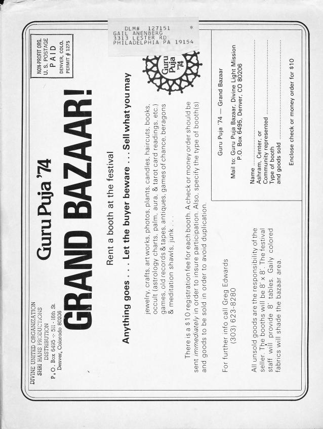 Presently, Divine Light Mission in America is making enough money to barely pay for its own activities. To finance propagation internationally will require more premies to support the mission.