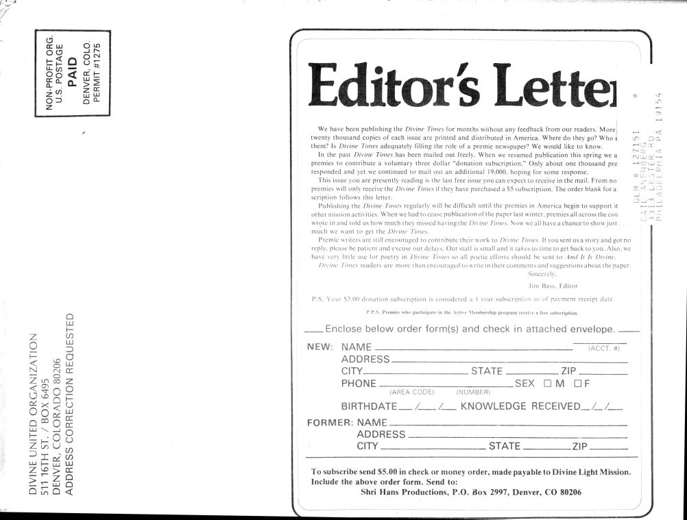 Divine Times - October 15, 1974 Volume 3, Issue 4