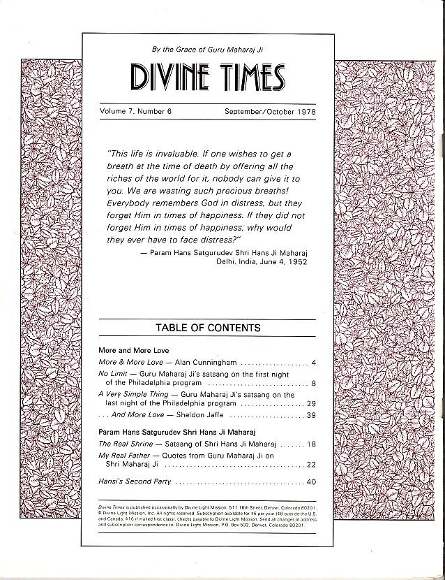 Divine Times - September/October 1978 Volume 7, Number 6