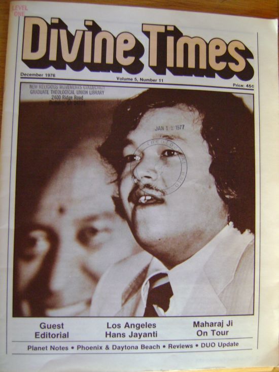 As of early 2012 we have a good sample of the USA Divine Times magazine available from beginning 1973 to 1980. Hopefully, a larger and earlier sample will one day be available. If you have any please contact us