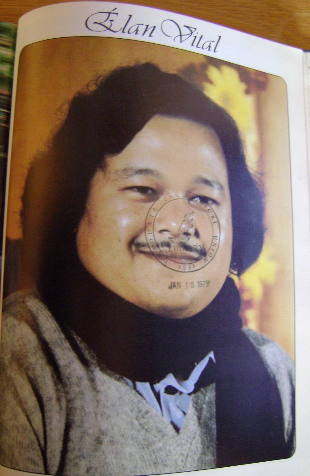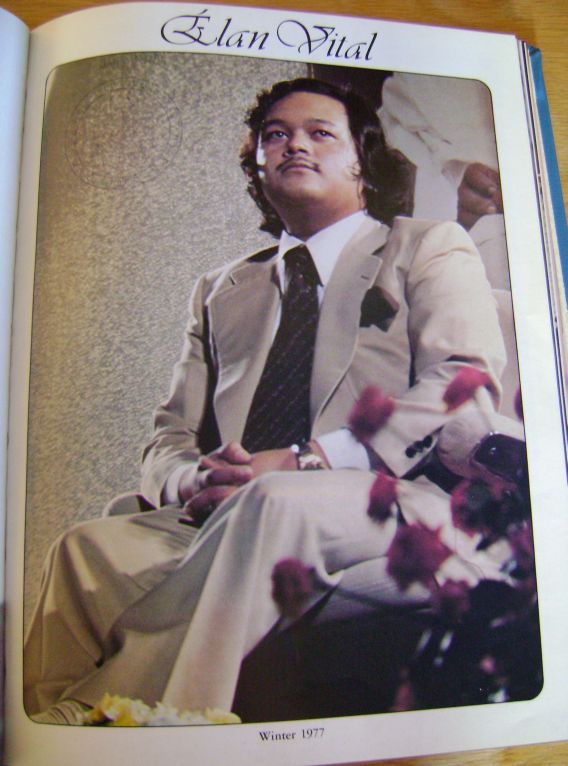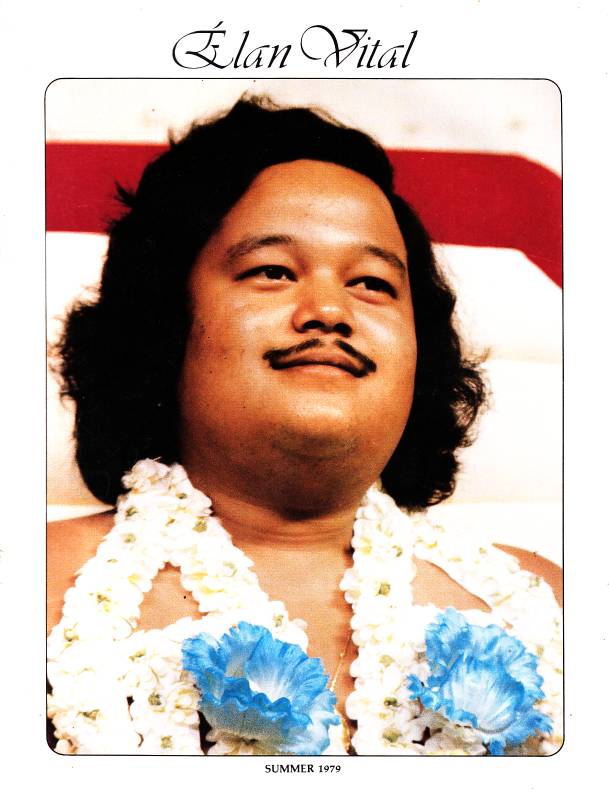 'Élan Vital' was the name of this magazine published by Divine Light Mission from 1977 until the early 1980's. Divine Light Mission was then renamed 'Élan Vital' when Prem Rawat decided to distance himself from his brief early 1970's fame/infamy as the fat teenage God boy whose career foundered in a derisive glare of publicity with his wedding to an older and taller devotee, his disowning, disinheriting and depositing by his mother because of drunkeness and a "playboy lifestyle" and the failure of his proclamations that he would usher in a Millenium of Peace through his "Knowledge."
