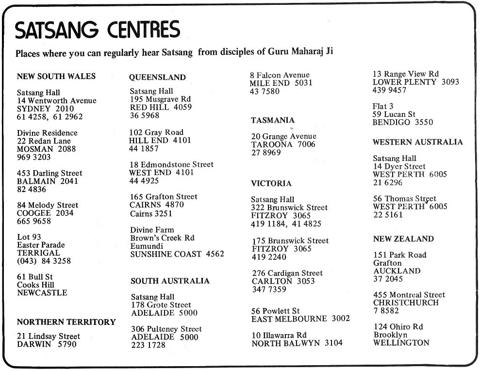 On his fleeting visit to Australia, Mahatma Satyanand Ji made a remark that has had cosmic repercussions throughout the premie community. Soul City Sites. He suggested that Hans Nagar (Soul City) could be built in Australia. Naturally enough, enthusiastic attempts have been made in all directions.