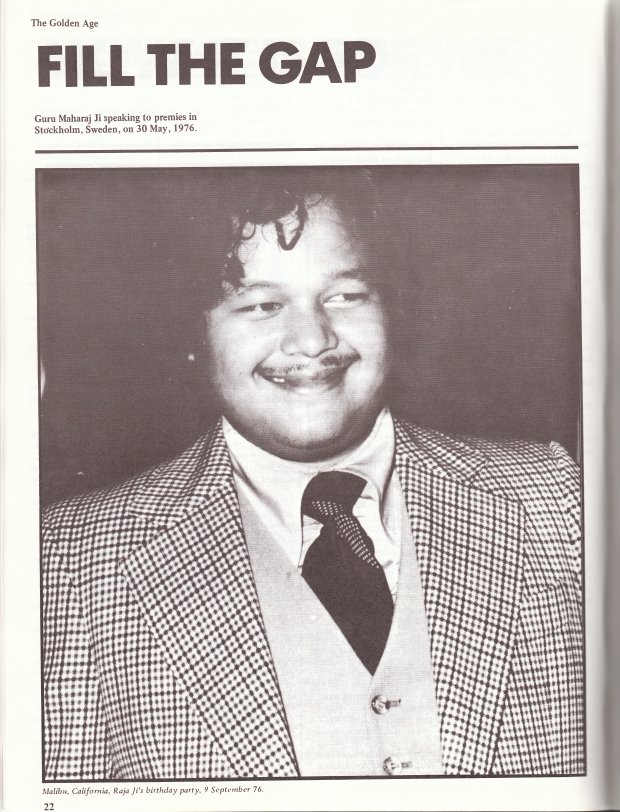 Prem Rawat or Maharaji (meaning Ultimate Ruler) as he calls himself or Guru Maharaj Ji as he called himself until the 1980's has no compunction stating he is a unique person with power possessed by nobody else alive. He declared himself the Lord of the Universe and the Perfect Master at the age of 7 and this along with his George Clooney-like looks and his stylish wardrobe and his astonishing income for a 16 year old convinced a 24 year old, tall, blonde Californian to be his bride. Such a cross-cultural marriage might have been difficult except that after untold hours of meditation, deep in her heart she had signed a billion year contract to honour and obey him. After all, how many young women have the chance to marry - not their prince - but their Lord of the Universee and Perfect Master. As he might have said "It's a no-brainer!"