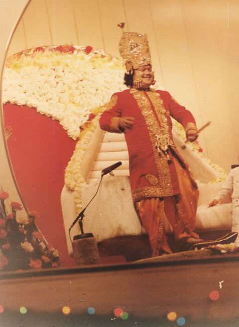 In 1976/77, thanks to some miscommunication from Guru Maharaj Ji, the DLM administers had to cope with an exodus of ashram premies and a collapse of DLM's financial situation. They demanded Prem cut his spending. He tried his usual approach: blame everyone else and shoot the messengers. Finally he fell back on his father's favourite method of impressing the yokels: dressing up in fancy costumes and partying.
