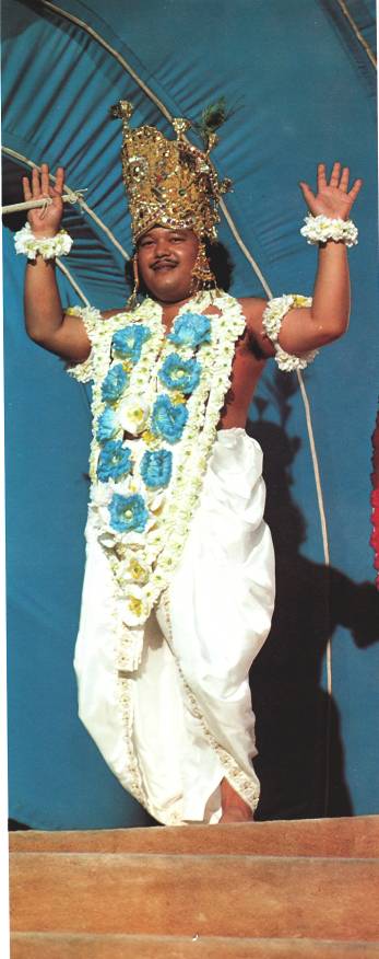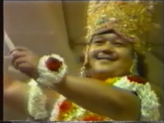 1978 to 1981 were the peak years in which Prem Rawat cut loose with public dancing usually dressed in some bizarre costume as Krishna showing quite a lot of skin but having his floppy boy boobs covered. It was common in the West after 1978 after Rawat took control of DLM in 1977 and has continued through much of his career. To an outsider it looks quite ridiculous. Prem Rawat is an extremely short and obese person and when dressed as Krishna his rolls of fat are only partially covered. His movement is poor and lacking in rhythm which initiators excused in the 1970's by saying he had told them that universes were created and destroyed when his arms rose and fell.
