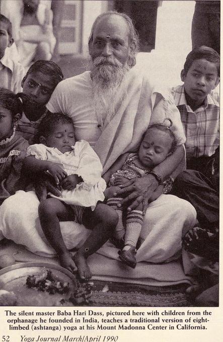 The "Silent Master" Baba Hari Dass taught a traditional version of eightlimbed (ashtanga) yoga at his Mount Madonna Center in California. He has not spoken since 1952 and uses a chalkboard to communicate. If there is any scandal attached to Hari Dass it has been kept as quiet as the man himself.