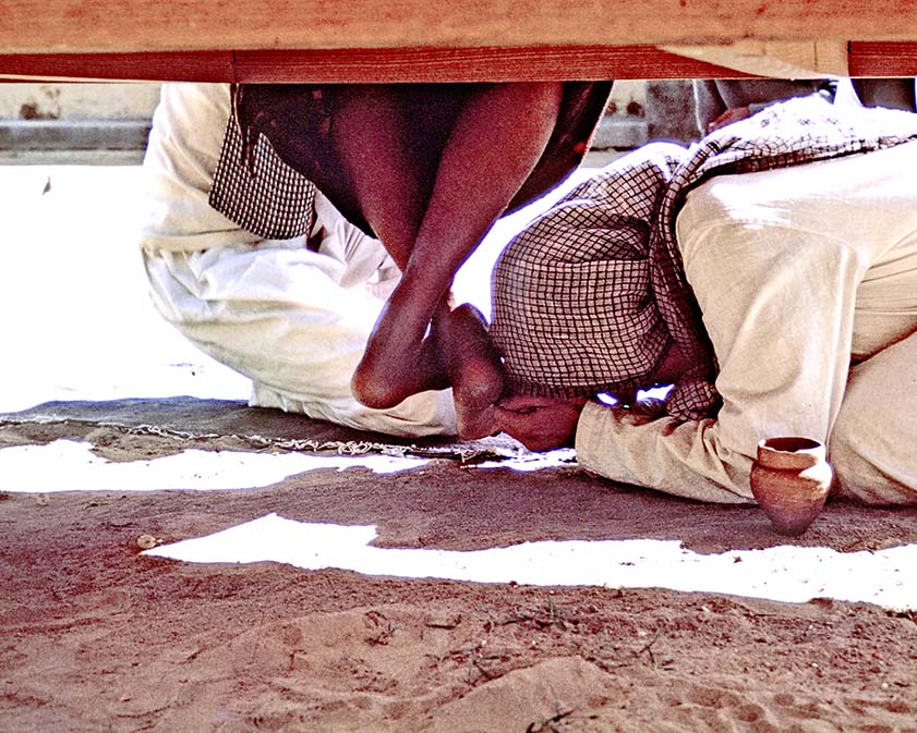 We'd be sitting outside and Maharajji would pull my hands under the blanket and make me massage his legs, almost pulling me under the blanket. I loved touching him, but I was not sure how far you can go in touching Maharajji. I'd be working on his feet and calves, and he'd grab my arm and pull my hand up to his thigh. So I'd do his thighs for a little bit and then my hands would start wandering down to his calves again, because all of a sudden I'd look around and see all these people staring at me.