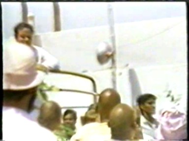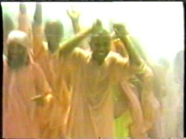 The usual Indian chaotic crowd scenes, Rawat driving through the crowds giving "darshan", standing on top of a tower giving satsang, sitting on top of a high stage giving satsang, a group of "mahatmas" sitting at the front of the crowd and something that was no longer being shown in the West, a zoom in on his Holy Lotus Feet. Scenes of crowd shouts of "Bolie Shri" (I guess) and throwing their arms up in synch are a too much like a Leni Riefenstahl film for me but I'm sure it was all good, clean fun.