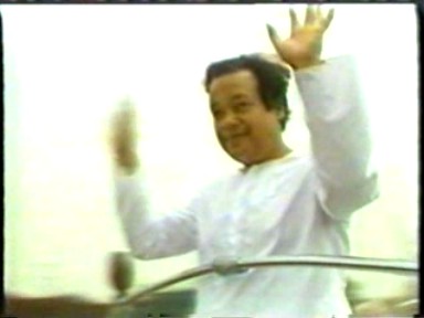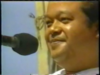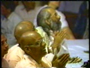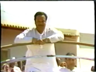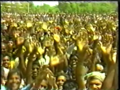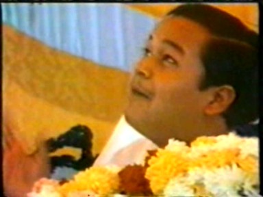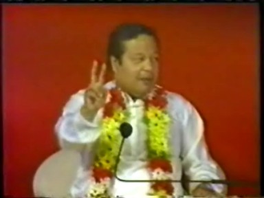 A scene of Rawat giving satsang ("making a speech") in Hindi. This demonstrates he is still calling himself Guru Maharaj Ji in India in 1988 and that his style of pontification in Hindi retained far more of his 1970's ranting rather than the newer gentler, raconteur style he was moving to in English.