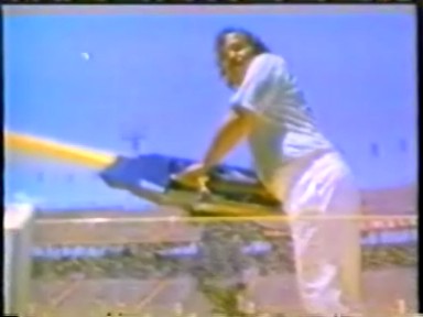 Rawat has played practical jokes with a nasty edge on them throughout his life as the Perfect Master. Sampuranand cowers in the stairwell to avoid the powerful bast of the water gun. Rawat releases a bucket into the jet, hopefully it will be empty when it lands in the crowd. There appears to be an official cheer leader in the crowd, however his attempt at leading an "Indian wave" doesn't seem to be working.