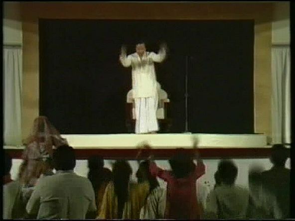 The almost obligatory dancing sceneMaharaji could hardly dance on stage in the West as word might get out but in the East it was perfectly acceptable and these videos were tagged for PWK (People with Knowledge) or PWK & ASP (Aspirants) and were only shown to the appropriate audiences in the West. This allowed the middle aged Western premies to relive some of the excitement of their 1970s Divine Light Mission days when the were young