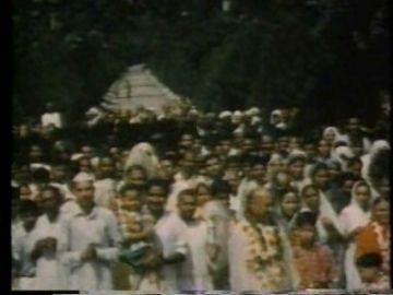 The image to the right is a capture of a very short scene which includes Prem Rawat's mother when she first believed he had inherited her husband's role as Perfect Master before his drunkeness, drug taking and materialism forced her and C. L. Tandon the President of Divine Light Mission, India to replace him as the Satguru of her dead husband's Indian followers and organisation. This decision was upheld by the Indian courts after Prem Rawat failed in his legal action to retrieve his position. Mahatmas Gurucharanand and Sampuranand and Rawat's bodyguard, Bihari Singh of the waxed moustache, were nearly always in the picture in his childhood.