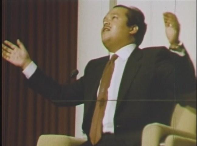This 18 minute long 1981 video, copyright Élan Communications 1981, contains some brief extracts of Rawat's speeches in North and South America in January and February 1981 with some backstage and city scenes. Rawat looks quite different from his 1970's appearance. He has cut his hair, dieted (there's still a lot of fat) and his moustache has finally thickened up. He is in a transition phase giving what appear to be "introductory satsangs" ie speeches to audiences in which there will be some people who are not already devotees. If these excerpts are representative samples of his speeches, he is still calling himself the Perfect Master but he is altering his vocabulary and calling himself the less explicit "Master". He still speaks of "revealing God" which he later replaces with "revealing inner peace" in his public speeches. His delivery is loud, full of bluster, grammatical errors and non sequiturs.