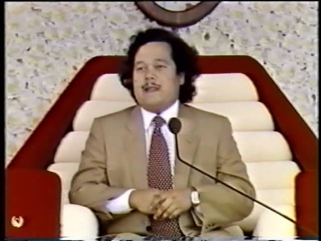 Do we think of our Master? Are we really faithful, faith, are we truly faithful to Guru Maharaj Ji? Have we, you know, what what what are we tryin' to do? Are we tryin' to repay Guru Maharaj Ji? With all the things that we do, are we tryin' to repay Guru Maharaj Ji? How can we repay Guru Maharaj Ji? What do you give Guru Maharaj Ji to repay Guru Maharaj Ji? What? What conceivably, what possibly can you give? Except that love, except this life, except being just really a premie. That's what Guru Maharaj Ji wants is a premie. If Guru Maharaj Ji didn't want premies then there is this whole world right? Thousands of people here and there. Go sit down in a football game, "Oh Guru Maharaj Ji there's all your little creatures that you made one day." And it's like that, it's not gonna, that's not gonna please Guru Maharaj Ji's heart to see these dumb creatures that he made on a dumb day to sit there and watch a dumb thing happen, kicking around a little football or whatever.
