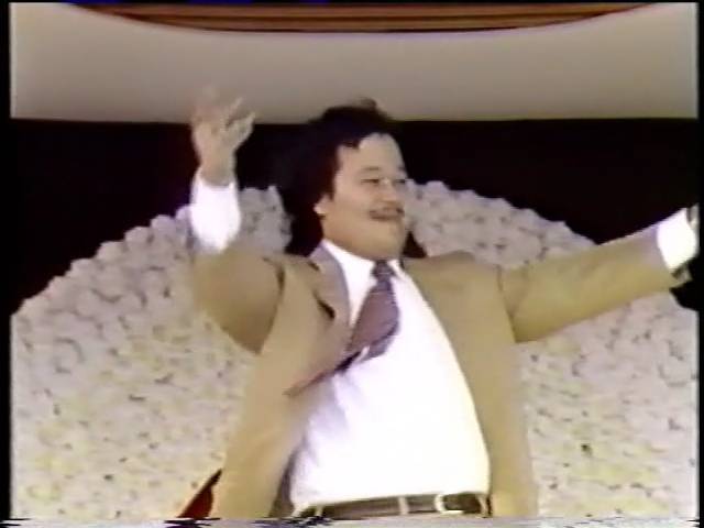 This gets the audience into the appropriate mood of worship and unconditional acceptance of everything Rawat says.