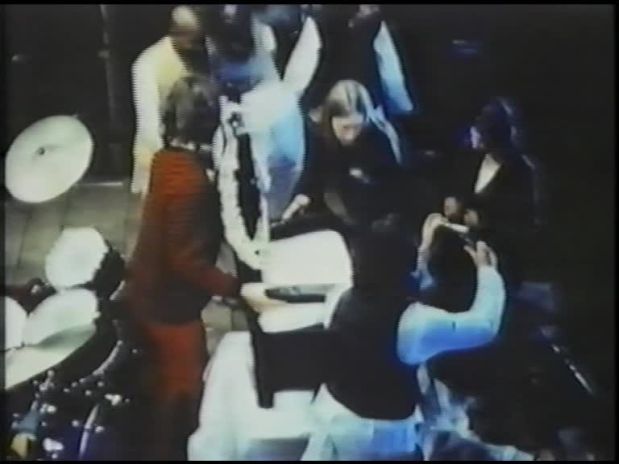 Nick Lowe of Brinsley Schwarz remembers it quite differently. They refused to leave the stage until "huge chunks of metal started being dropped on them from the pyramid by his more enthusiastic followers." And the video shows it wasn't a split-second thing though fortunately for Rawat his speech was short.