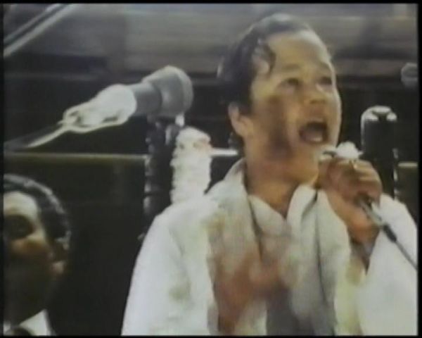 Linda Pascotto: I thought he was very tolerant of all of us. (sniggers) I think we were a little bit you know kind of out there a lot of us and he he never seemed to make any judgement about us at all. He just seemed really focussed on discussing this experience and he made it very clear that it was very easy all we had to do was to ask for it. (Soundtrack: Guru Maharaj Ji, Guru Maharaj Ji's the one) But when he had to say there's no disputing that he was having an experience that I wanted to have and I felt totally confident that he could take me to that place.