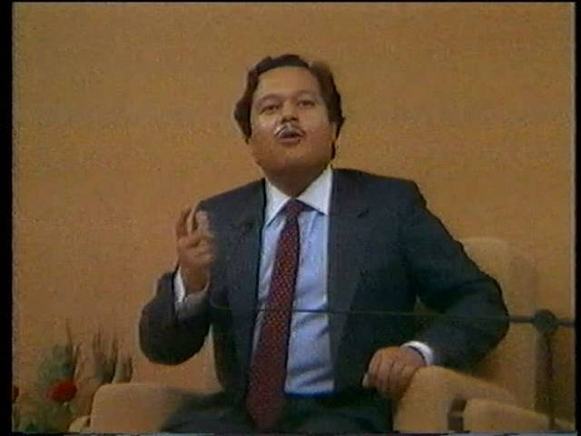 This video was taken of Prem Rawat giving a speech on the 1st November, 1981 in Rome, presumably part of a Hans Jayanti festival. His speech is more confused than his norm for those years and his claims are wilder: There is no other hope for a human being but himself, like it or not! The video contains a long section of him sitting onstage while 'Arti' is sung. The singing is mainly inaudible though the song is easily recognisable.