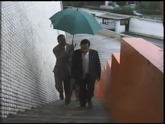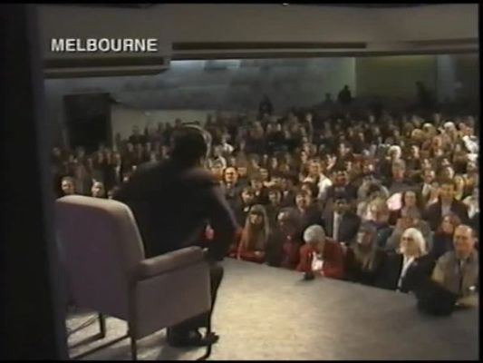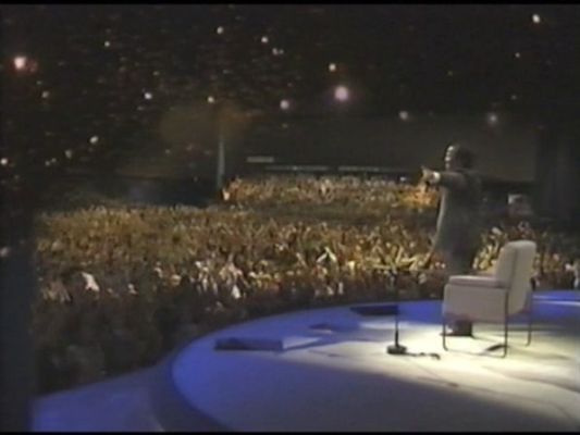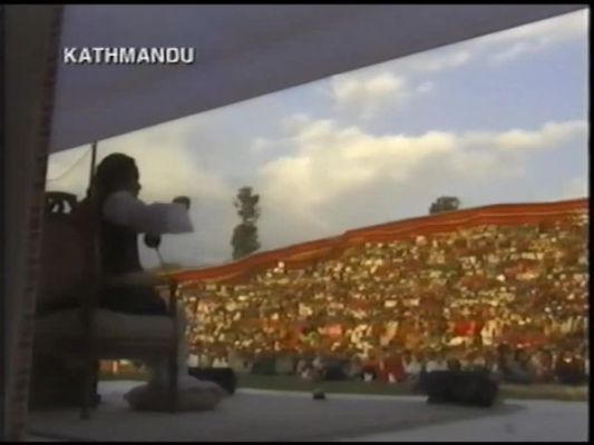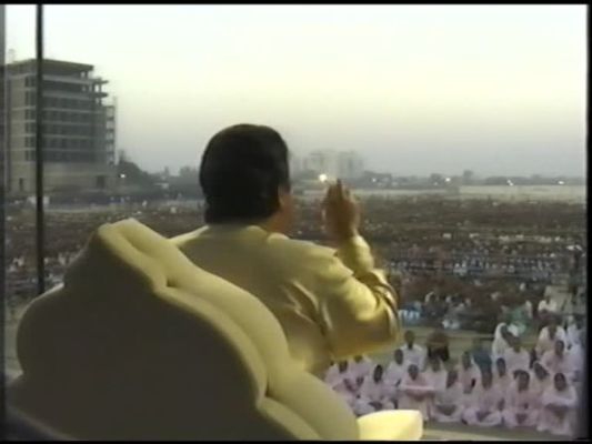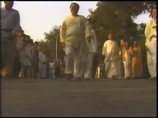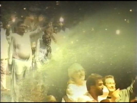 This short (17 minutes) 1997 video is basically a montage of his travels in 1996 with a few short excerpts from his speeches and some songs. It begins with a scene of a line of people in Japan which devotees of Rawat can recognise as a where his followers pass before him and bow and kiss his feet as he sits in a raised chair. Such displays of Indian religious fervour are kept secret but a keen eye can see that the head of one person goes down on Maharaji's feet at the right side of the screen. There is a quick clip of another in Kaohsiung later in the video and there is one in New Zealand and another in India. There are shots of the large crowds at his "events" though this is mainly the same crowd in different places on the same continent.