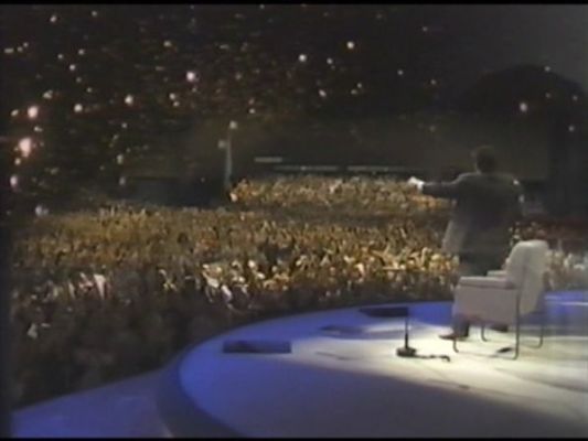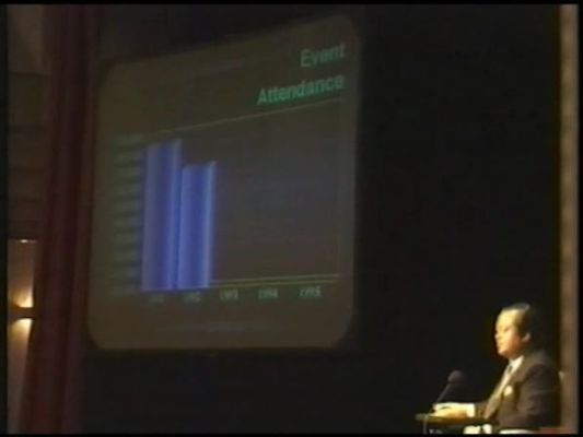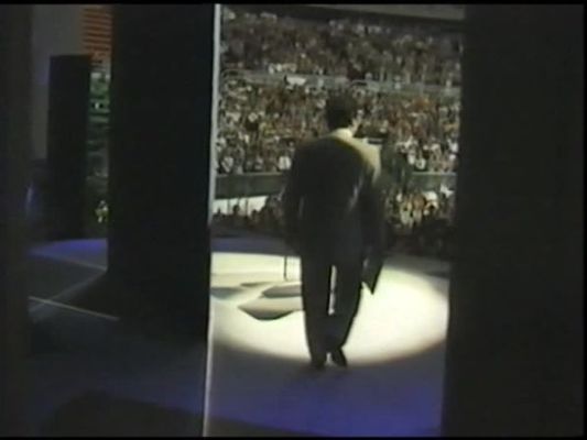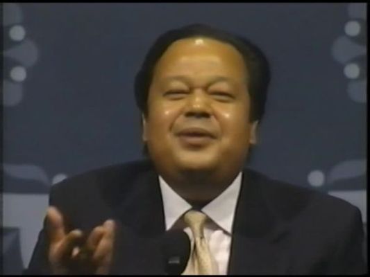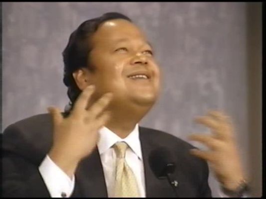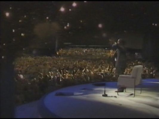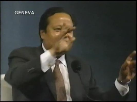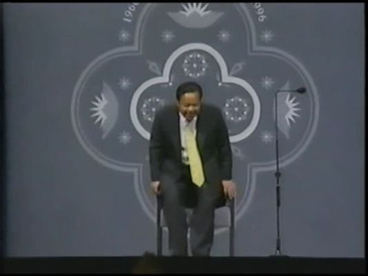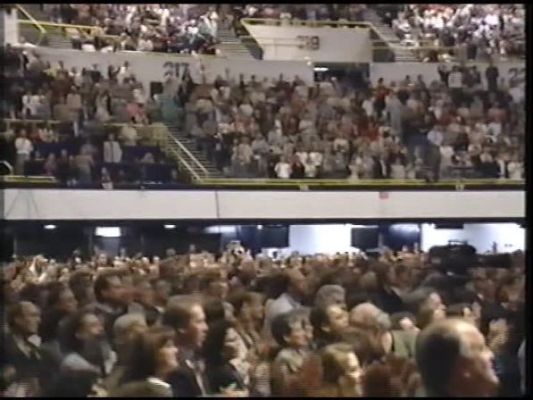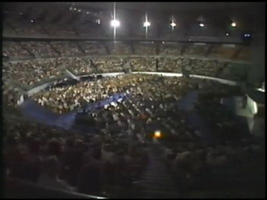 In the midst of this falsely positive view of the "growth" in Rawat's followers (the graph even shows less event attendance in 1992 compared to 1991) is a clip of him telling his followers to remember him so that when they are dying they will think of him as well. They applaud as they ordinarily do when he makes statements alluding to his divinity. He then attributes this to Krishna talking to Arjuna thereby reminding them of his early teachings that he was, in fact, Krishna, he was Jesus and he was every (Perfect) Master.