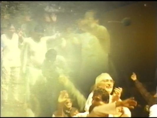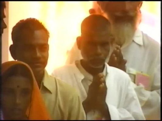 Pictures below are from scenes of a Darshan Line where Prem Rawat sits on a high chair, people line up, pass in front of Rawat amd kiss his feet as they go past. It is filmed so that premies will recognise it and understand but others won't.