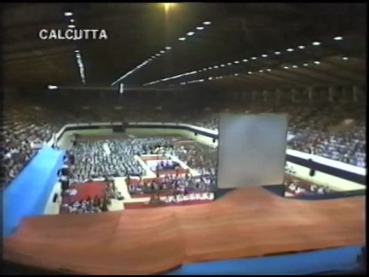 Below are stills from scenes of another Darshan Line as premies line up to kiss Maharaji's Lotus Feet. Film of the actual bowing and kissing hasn't been released since the early 1980's.