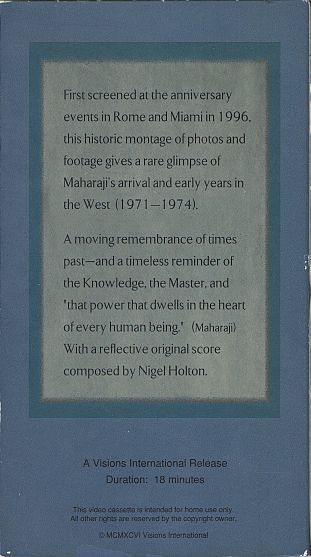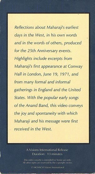 Windows In Time, an ILC (International Learning Center) production and a Visions International (a division of Élan Vital Inc) release, was premiered at the 'Festival of Knowledge' in Miami, July 1989. It contains historical footage from India and a ridiculously upbeat view of Rawat's early career in the West. In the 1970's the press had been nearly 100% critical and derisive of the 'fat boy guru'.