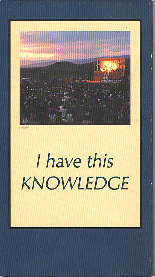 I Have This Knowledge, a Visions International, 1996 11 minute long video, allows premies to reminisce watching small clips and still photos from the early 70's Divine Light Mission archives. The soundtrack is an upbeat, edited "satsang" of Prem Rawat's talking about his early life in the West, some "interviews" with members of his inner circle and pointed comments about "Indian cultural" artifacts mistakenly taken up by young Westerners of the time that Prem Rawat has "removed" from Élan Vital doctrines.