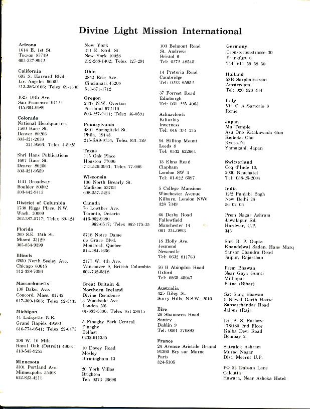 'And It Is Divine' was the name of this colour magazine published by Divine Light Mission in the USA from November 1972 until the late 1970's when it was replaced by 'Élan Vital'. Before 1974 every copy carried a signed manifesto by Sant Ji Maharaj stating "There has never been a time when the Lord of Creation did not manifest Himself in human form, and come to this planet Earth to do away with evil and spread the True Knowledge.