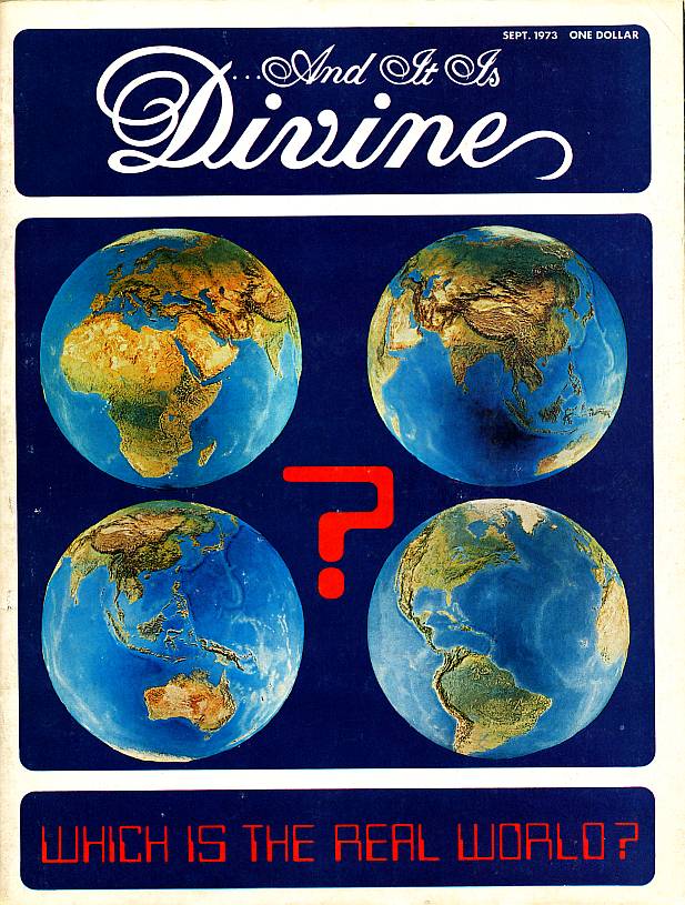 'And It Is Divine' was the name of this colour magazine published by Divine Light Mission in the USA from November 1972 until the late 1970's when it was replaced by 'Élan Vital'. It began as a monthly magazine with highbrow pretensions attempting to carry a wide spectrum of articles relating to the wider alternative culture and ended the same as all other Divine Light Mission magazines printing pictures and speeches of Prem Rawat's or his immediate family or close followers. Before 1974 every copy carried a signed manifesto by Sant Ji Maharaj stating "There has never been a time when the Lord of Creation did not manifest Himself in human form, and come to this planet Earth to do away with evil and spread the True Knowledge.