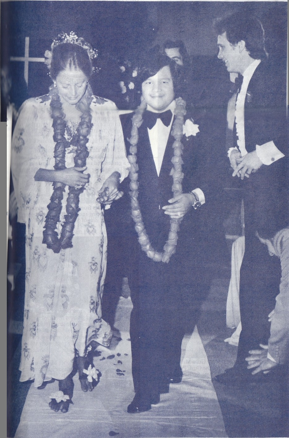 Music composed and sung by devotees of Guru Maharaj Ji was performed during the ceremony, which included scriptural texts from the Gospel of St Matthew and a passage by the Lebanese poet, Khalil Gibran, on the meaning of marriage. Following the wedding, a small reception was held at the Divine Residence in Denver, where Guru Maharaj Ji, now a permanent resident of the United States, has established the headquarters of Divine Light Mission, which is dedicated to spreading world and personal peace through a practical, inner experience of meditation called Knowledge.