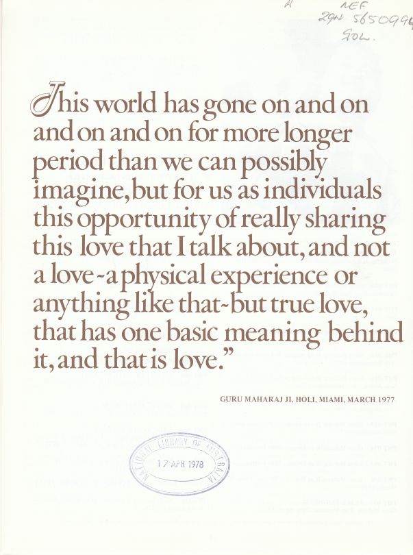 Satsang given by Guru Maharaj Ji in Kansas City, January 22, 1978.