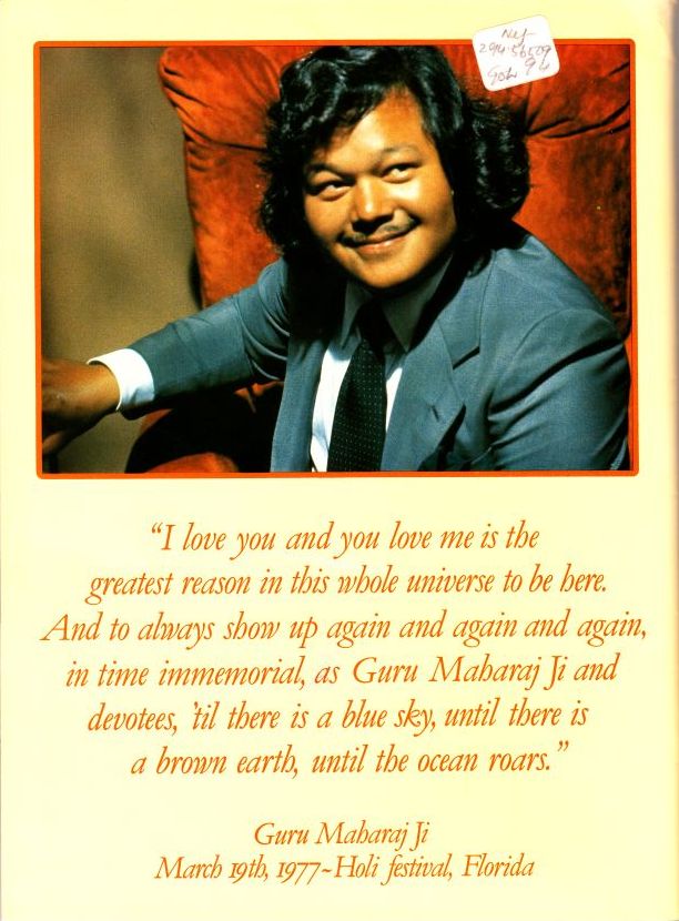 I love you and you love me is the greatest reason in this whole universe to be here, and to always show up again and again and again, in time immemorial, as Guru Maharaj Ji and devotees, 'til there is the blue sky, until there is a brown earth, until there the ocean roars.