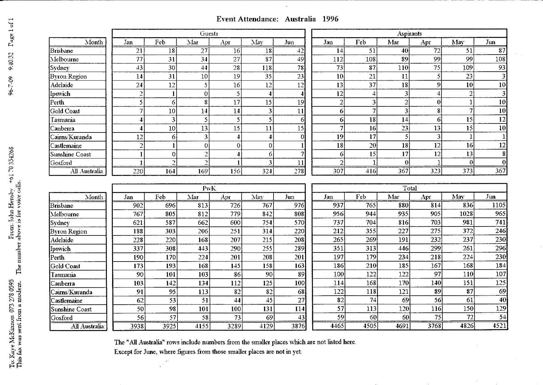 1996 Australian Event Attendances Not the number of people who attended but the number of attendances.