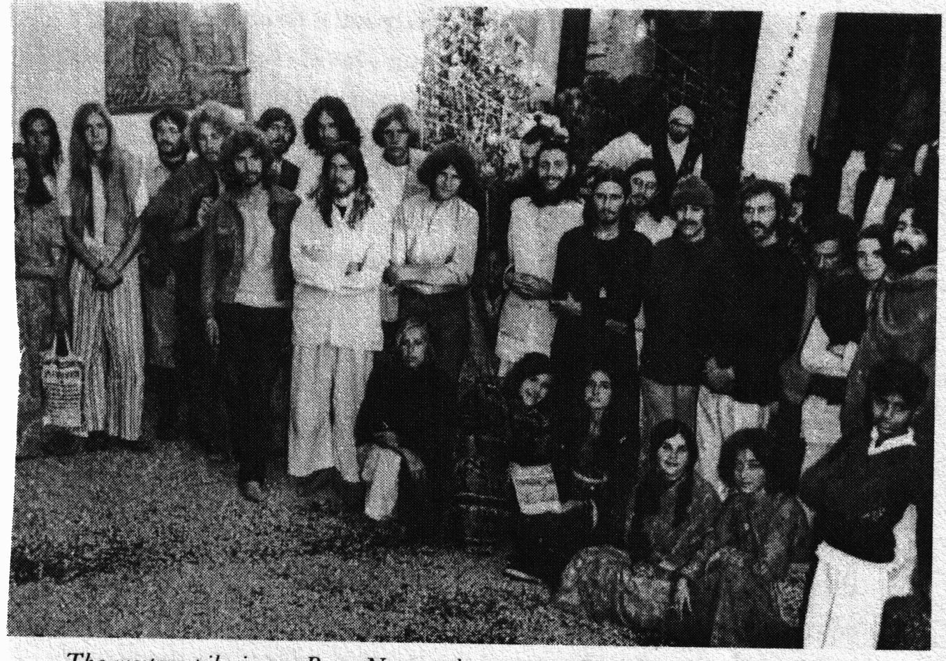The western pilgrims at Prem Nagar ashram: Peter Lee is on the far right a blanket. I am fourth from the right clutching my hands. Glen stands next to