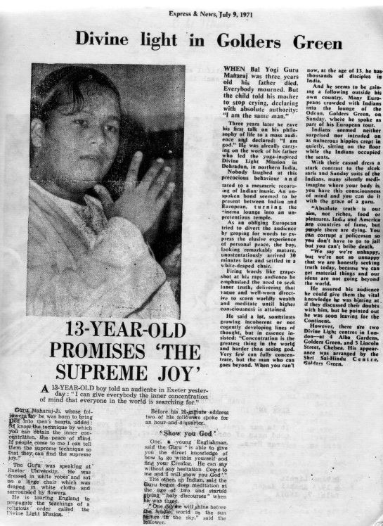 He is touring England to propagate the teachings of a religious order called the Divine Light Mission.