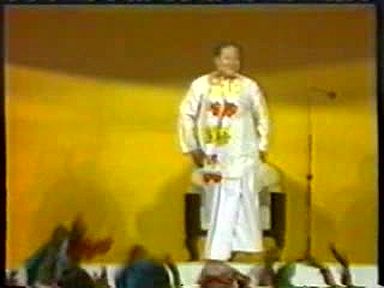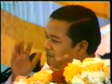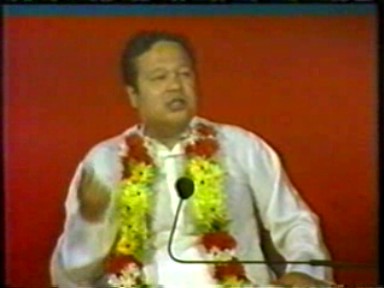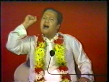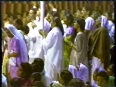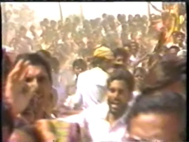 A scene of Rawat giving satsang ("making a speech") in Hindi. This demonstrates he is still calling himself Guru Maharaj Ji in India in 1988 and that his style of pontification in Hindi retained far more of his 1970's ranting rather than the newer gentler, raconteur style he was moving to in English.