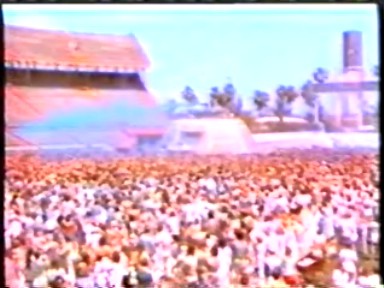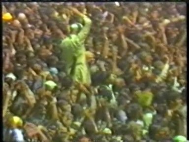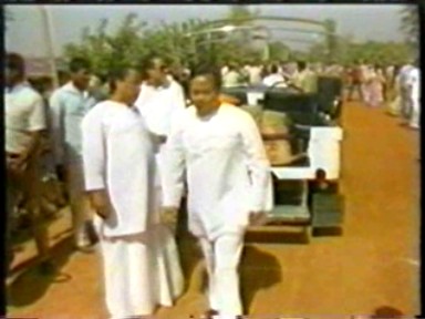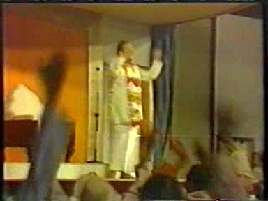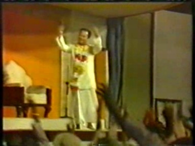 The usual Indian chaotic crowd scenes, Rawat driving through the crowds giving "darshan", standing on top of a tower giving satsang, sitting on top of a high stage giving satsang, a group of "mahatmas" sitting at the front of the crowd and something that was no longer being shown in the West, a zoom in on his Holy Lotus Feet. Scenes of crowd shouts of "Bolie Shri" (I guess) and throwing their arms up in synch are a too much like a Leni Riefenstahl film for me but I'm sure it was all good, clean fun.