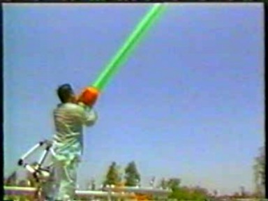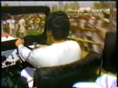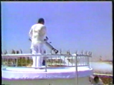 Rawat has played practical jokes with a nasty edge on them throughout his life as the Perfect Master. Sampuranand cowers in the stairwell to avoid the powerful bast of the water gun. Rawat releases a bucket into the jet, hopefully it will be empty when it lands in the crowd. There appears to be an official cheer leader in the crowd, however his attempt at leading an "Indian wave" doesn't seem to be working.