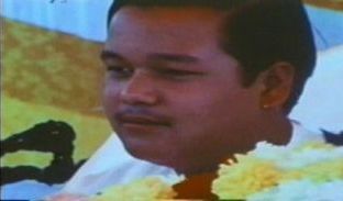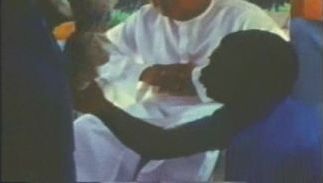 Scenes of darshan at Millenium 73. Prem Rawat wrote to his followers that Millenium '73 was going to be " the most Holy and significant event in human history". Rawat is giving Holy Breath.