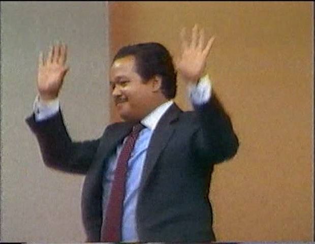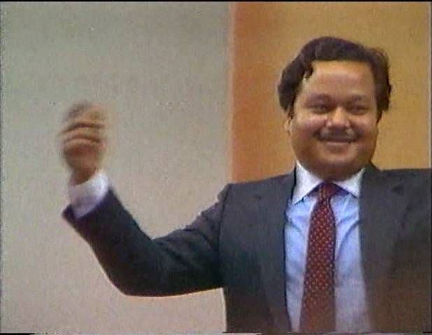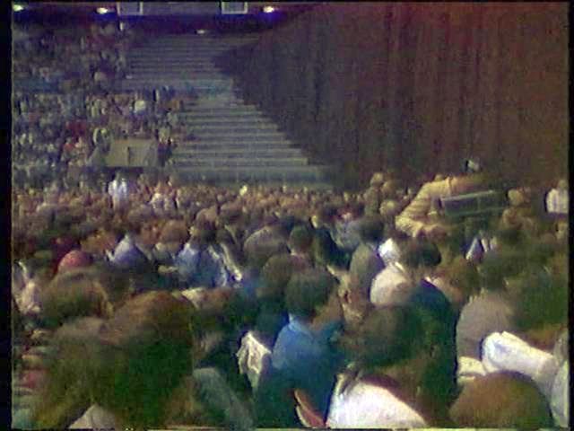 That song wasn't enough to get Prem Rawat, the Lord of the Dance, up and waving his arms so the band breaks into some South American rhythm with a song that includes a lot of 'senors' and 'satgurus'. Should be irresistable and sure enough, once again, Rawat dances though it's a pretty lame performance lasting only a couple of minutes.
