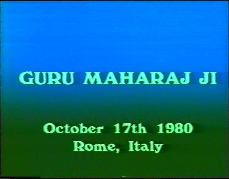 This video was taken of Prem Rawat giving a speech on the 1st November, 1981 in Rome, presumably part of a Hans Jayanti festival. His speech is more confused than his norm for those years and his claims are wilder: There is no other hope for a human being but himself, like it or not! The video contains a long section of him sitting onstage while 'Arti' is sung. The singing is mainly inaudible though the song is easily recognisable.