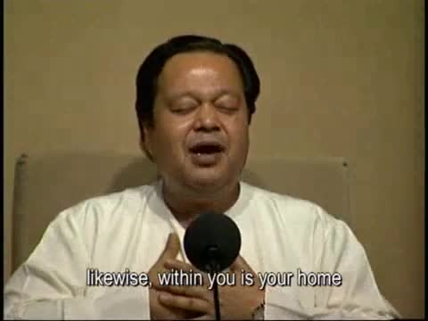 "Edited to an event of Prem Rawat, revered by many as Maharaji, speaking in India, this bhajan is sung by long time Bollywood and classical singer Suresh Wadekar. Boldly, the bhajan questions the listener to contemplate where his or her true home is. The lyricist uses the metaphor ghar, which translated in English means house, residence and or settlement, which in this video Maharaji indicates to as home, which he claims is within each person."