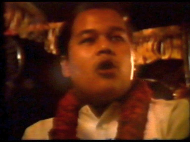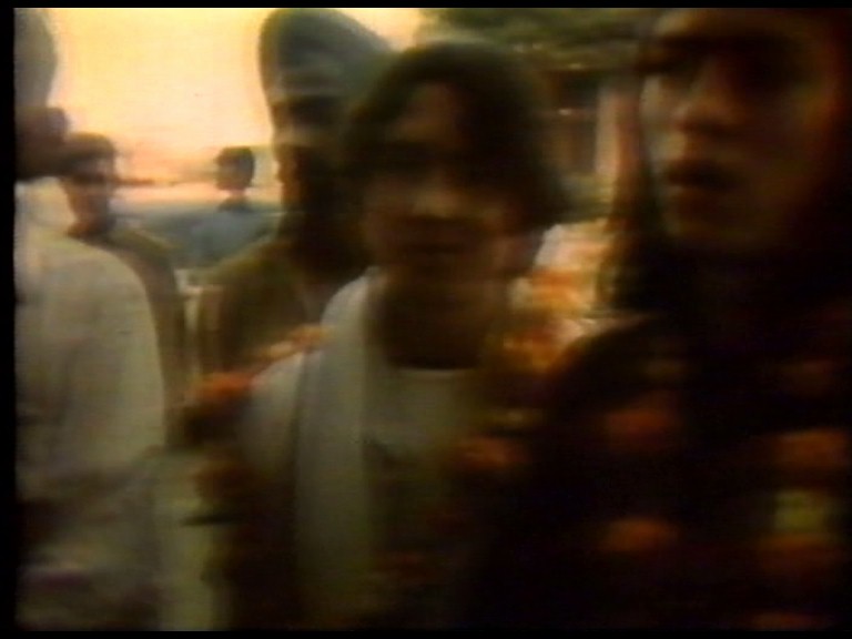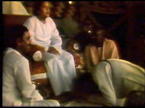 The film had degraded quite badly by the time it came out of an attic somewhere but maybe in a humidity controlled underground nuclear shelter Prem Rawat has stored everything he ever starred in and the young Westerners and their Indian milieu will be seen sparkling and fresh again. The excerpts of Rawat speaking in English are difficult to understand because of the poor audio quality and because they do not make much sense. The callow Western devotees' satsangs are positively Churchillian by comparison. Further Comments by the Webmaster are in italics.