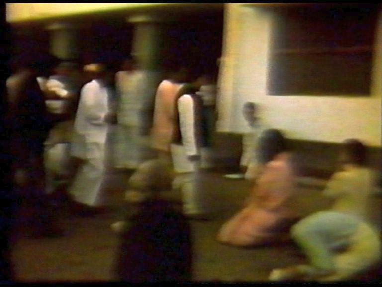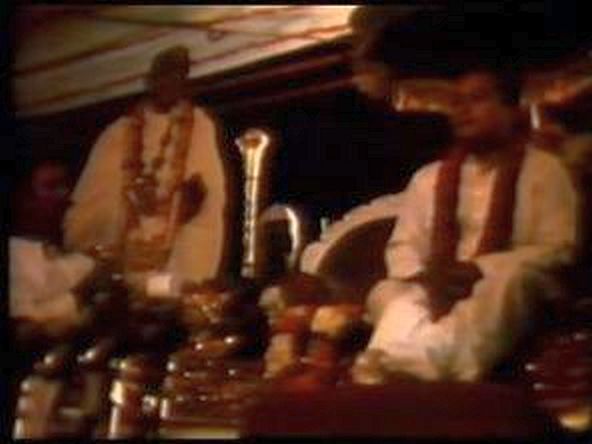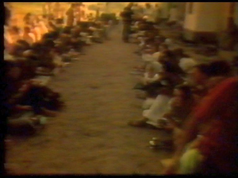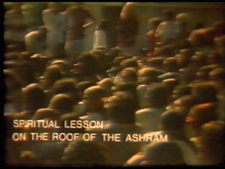 Mahatma Sampuranand leads the arti-tray waving and isn't that Mahatma Blissedoutanand aka Mahatma Saphlanand formerly Brian Pitt, singled out in the crowd. The Guru gives Hindi satsang and there is much tray waving and singing of a devotional prayer.