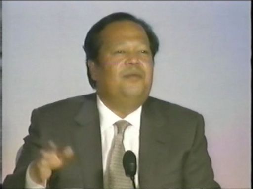Voiceover: Malibu California, December 10th, 1977, Maharaji speaks to a global audience simultaneously through an international phone feed.